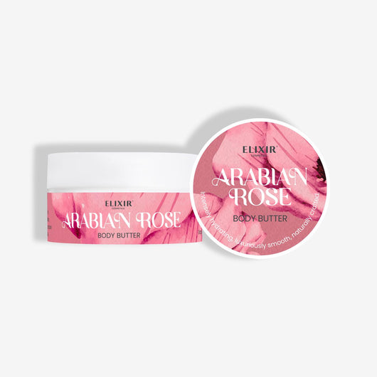 Indulge your skin with Arabian Rose Body Butter by Elixir Remedies — a daily luxury that keeps your skin nourished, silky, and beautifully scented.